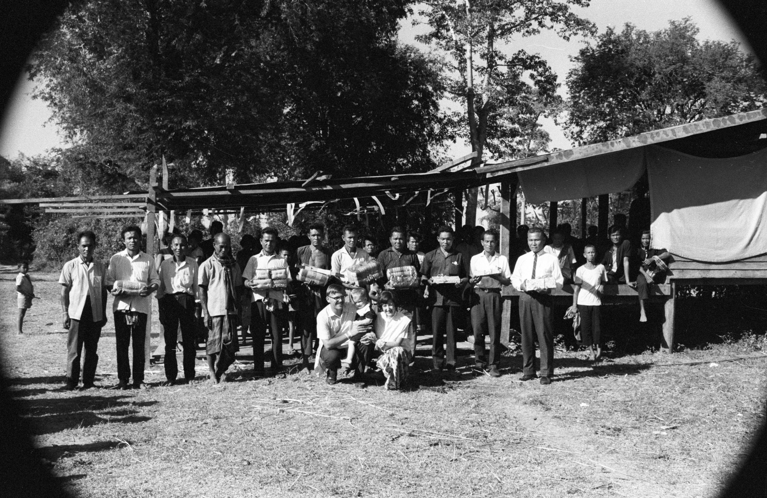 ภาพ: “งานเลี้ยงอำลา, มอบของขวัญให้ชารส์ เจน และ นิค, บ. หนองตื่น อำเภอเมือง จังหวัดมหาสารคาม ประเทศไทย พฤศจิกายน พ.ศ. 2511” | Charles and Jane Keyes Collection, University of Washington Research Works Archive
