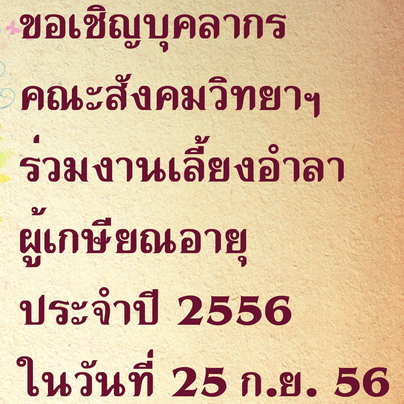 ขอเชิญ คณาจารย์ บุคลากร ร่วมงานเลี้ยงอำลาผู้เกษียณอายุประจำปี 2556