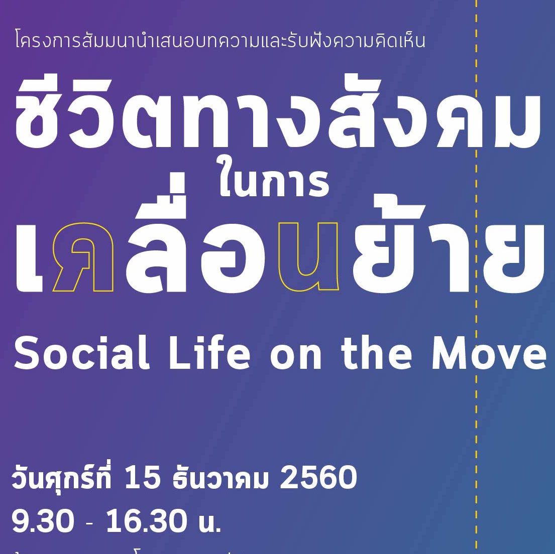 โครงการสัมมนาเสนอบทความและรับฟังความคิดเห็น “ชีวิตทางสังคมในการเคลื่อนย้าย” (Social Life on the Move)