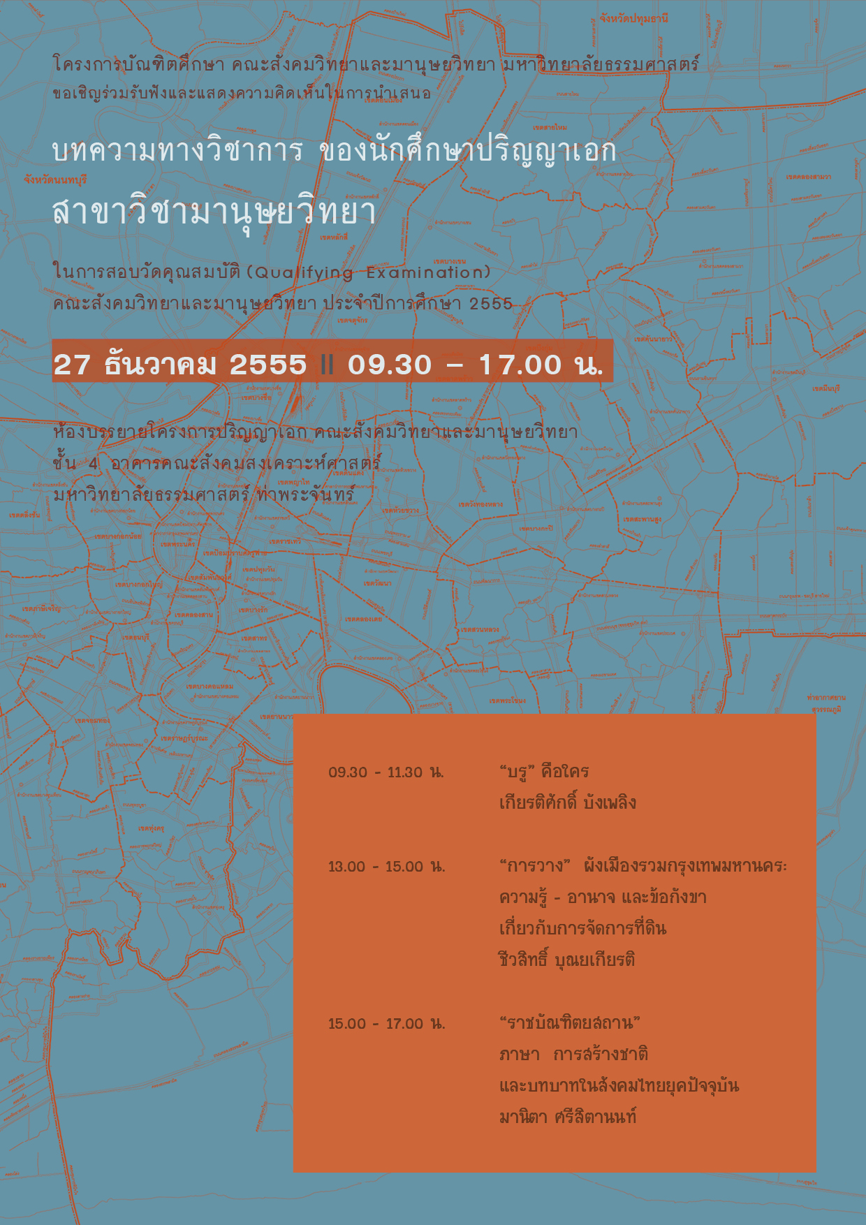 ณ ห้องบรรยายโครงการปริญญาเอก คณะสังคมวิทยาและมานุษยวิทยา