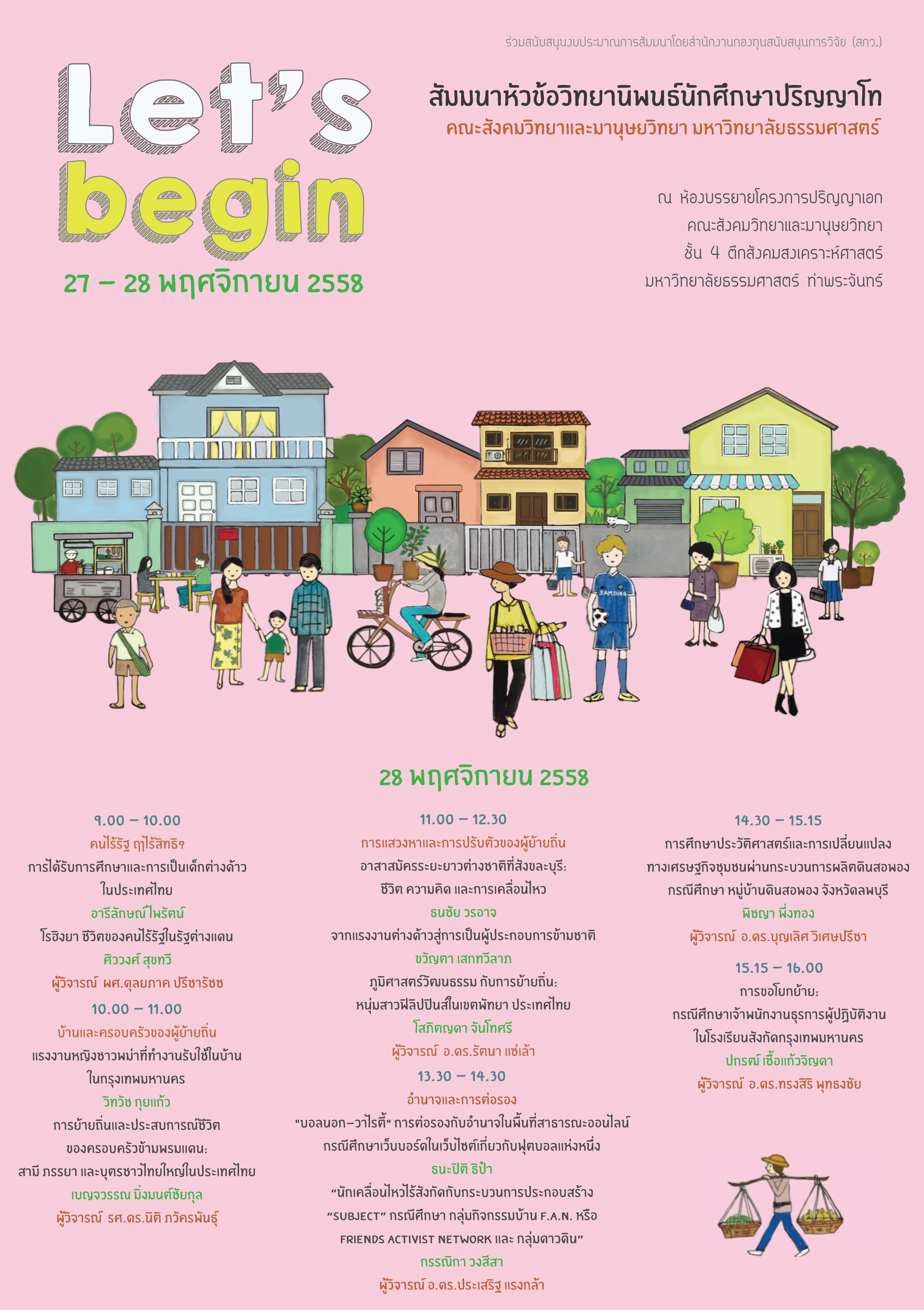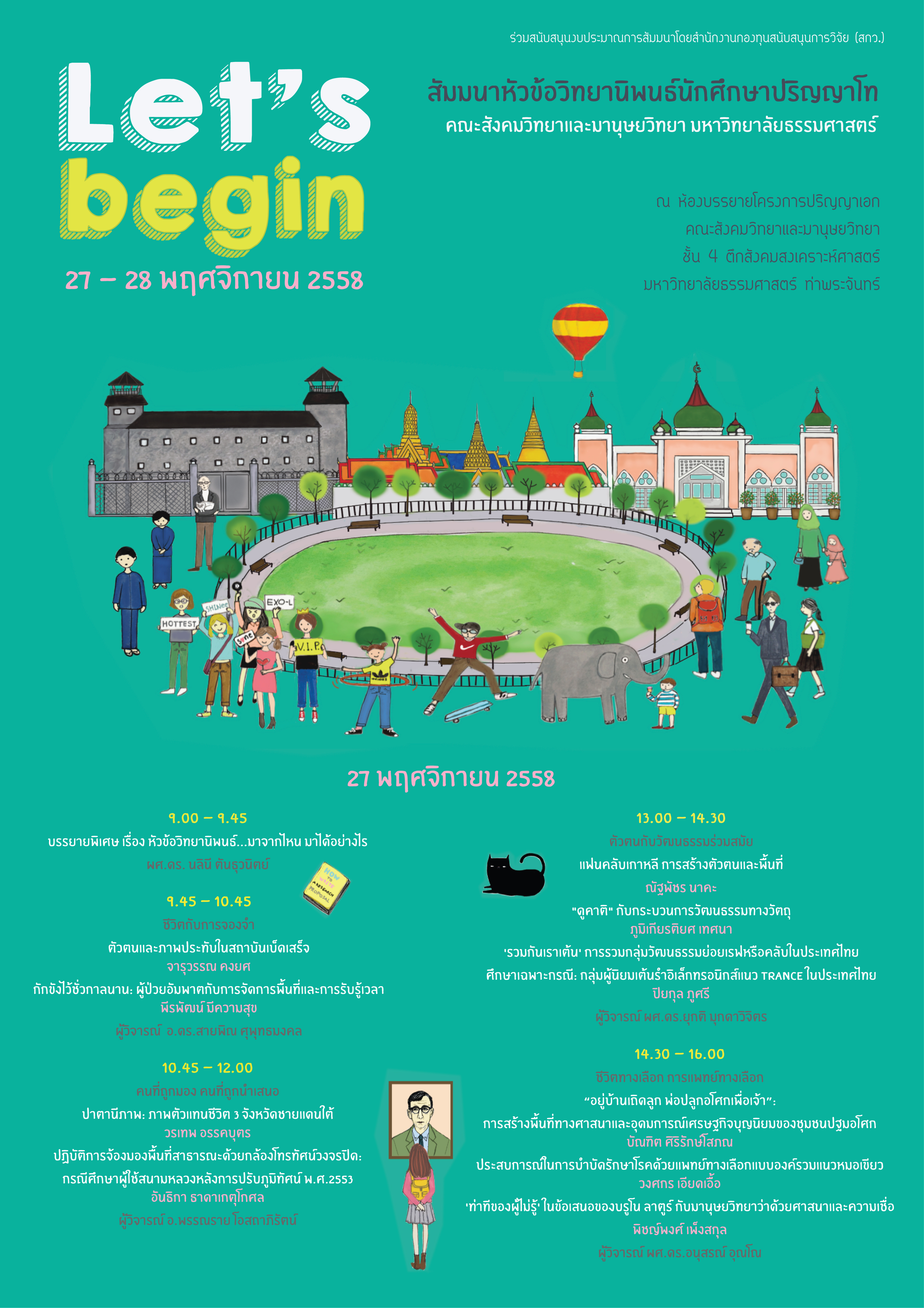 ณ ห้องบรรยายโครงการปริญญาเอก คณะสังคมวิทยาเเละมานุษยวิทยา ชั้น 4 อาคารคณะสังคมสงเคราะห์ศาสตร์ มหาวิทยาลัยธรรมศาสตร์ ท่าพระจันทร์