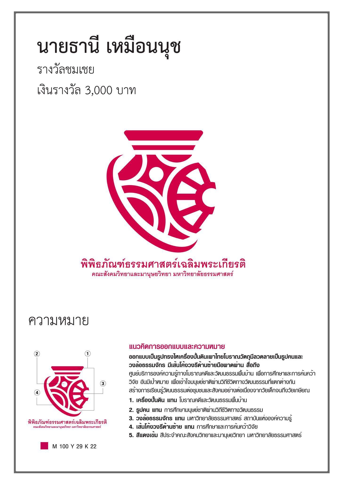 คณะกรรมการตัดสินการประกวดออกแบบตราสัญลักษณ์ พิพิธภัณฑ์ธรรมศาสตร์เฉลิมพระเกียรติ คณะสังคมวิทยาและมานุษยวิทยา มหาวิทยาลัยธรรมศาสตร์ ขอแจ้งผลการพิจารณา ดังนี้