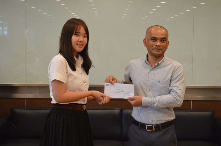 พิธีมอบทุนส่งเสริมการเรียนดี ประเภท 2 สาขาสังคมวิทยาและมานุษยวิทยา : นางสาววริยา เริ่มอรุณรอง | สาขาการวิจัยทางสังคม : นางสาวตติยา ปัฐยาวัต