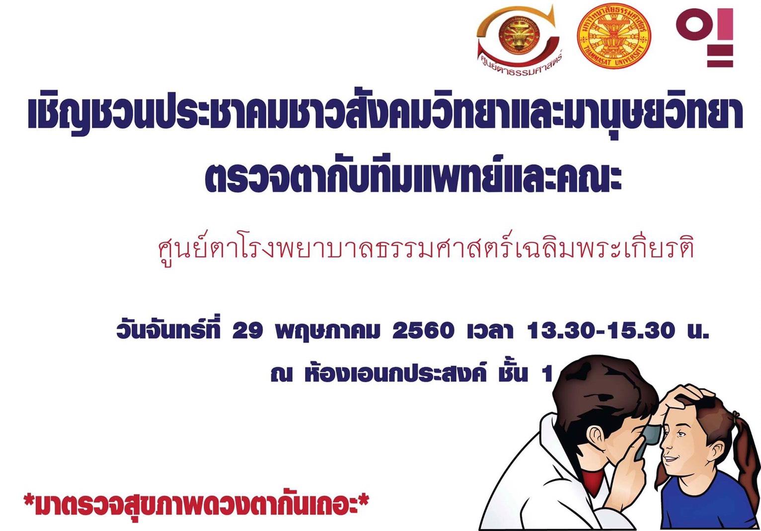 ขอเชิญเข้าร่วมตรวจสุขภาพดวงตา