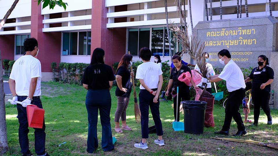 คณะสังคมวิทยาและมานุษยวิทยา จัดกิจกรรมโครงการจิตอาสาพัฒนาพื้นที่ (Big Cleaning Day) ประจำปี 2565 เนื่องในโอกาสวันแม่แห่งชาติ บริเวณหน้าอาคาร และลาน 50 ปีของคณะฯ มหาวิทยาลัยธรรมศาสตร์ ศูนย์รังสิต ณ วันที่ 18 สิงหาคม 2565