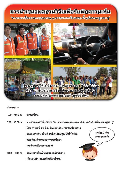นำเสนอผลงานวิจัยเรื่อง “ความพร้อมของแรงงานนอกระบบกับการเป็นสังคมสูงอายุ”