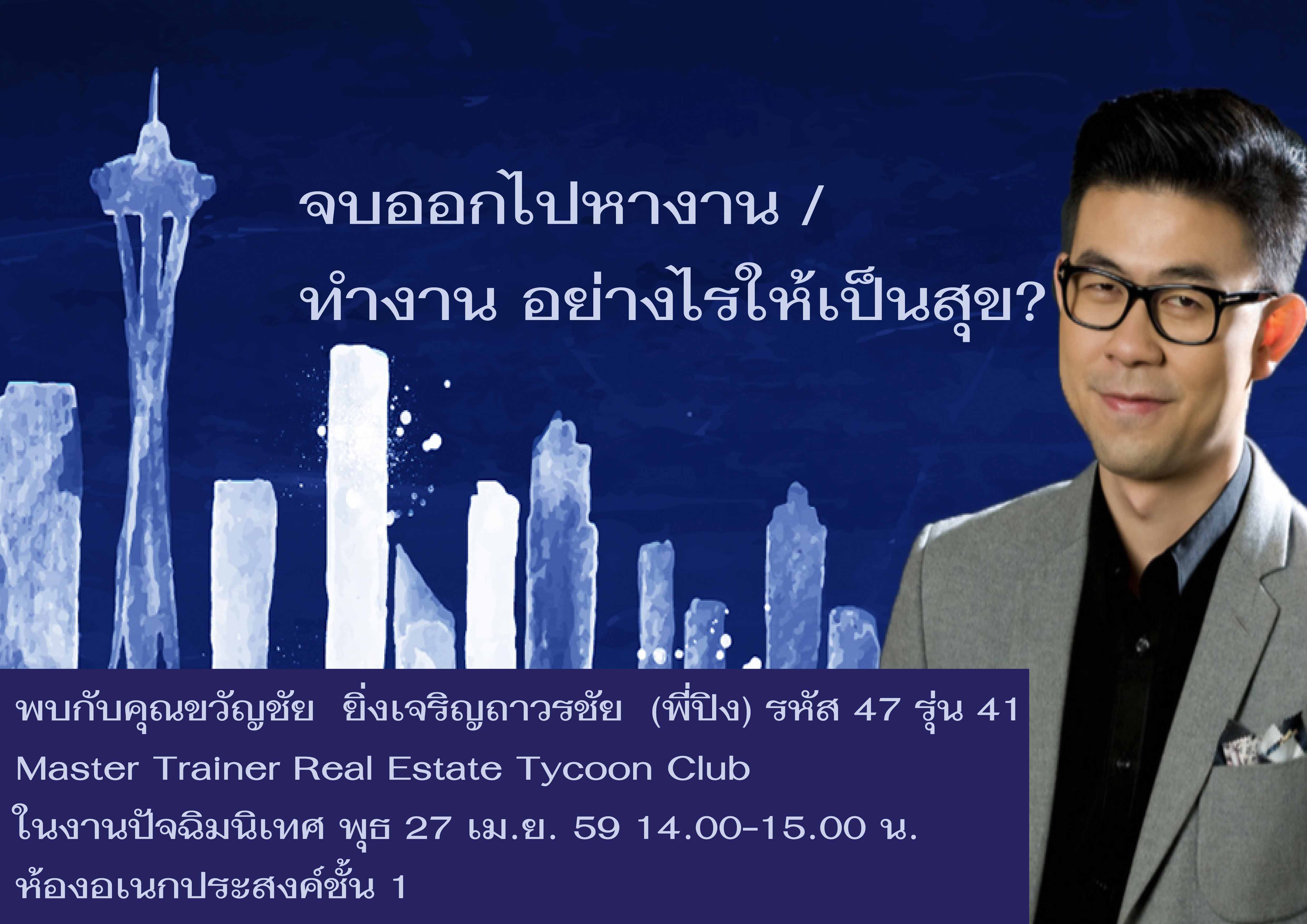 แนะแนวเรื่อง “จบออกไปหางาน/ทำงานอย่างไรให้เป็นสุข” โดยคุณขวัญชัย ยิ่งเจริญถาวรชัย (พี่ปิง) รหัส 47 รุ่น 41