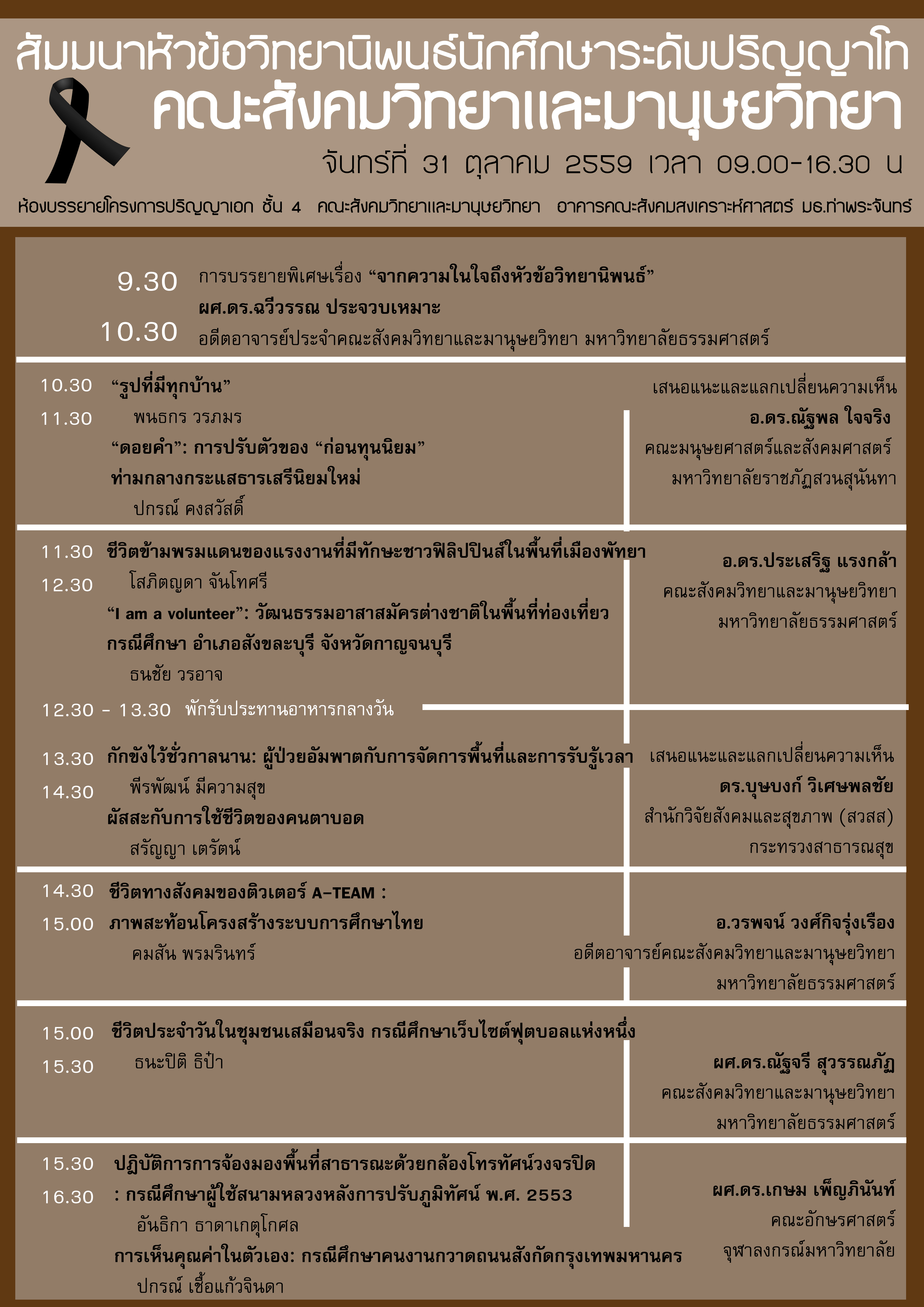 ณ ห้องบรรยายโครงการปริญญาเอก คณะสังคมวิทยาเเละมานุษยวิทยา