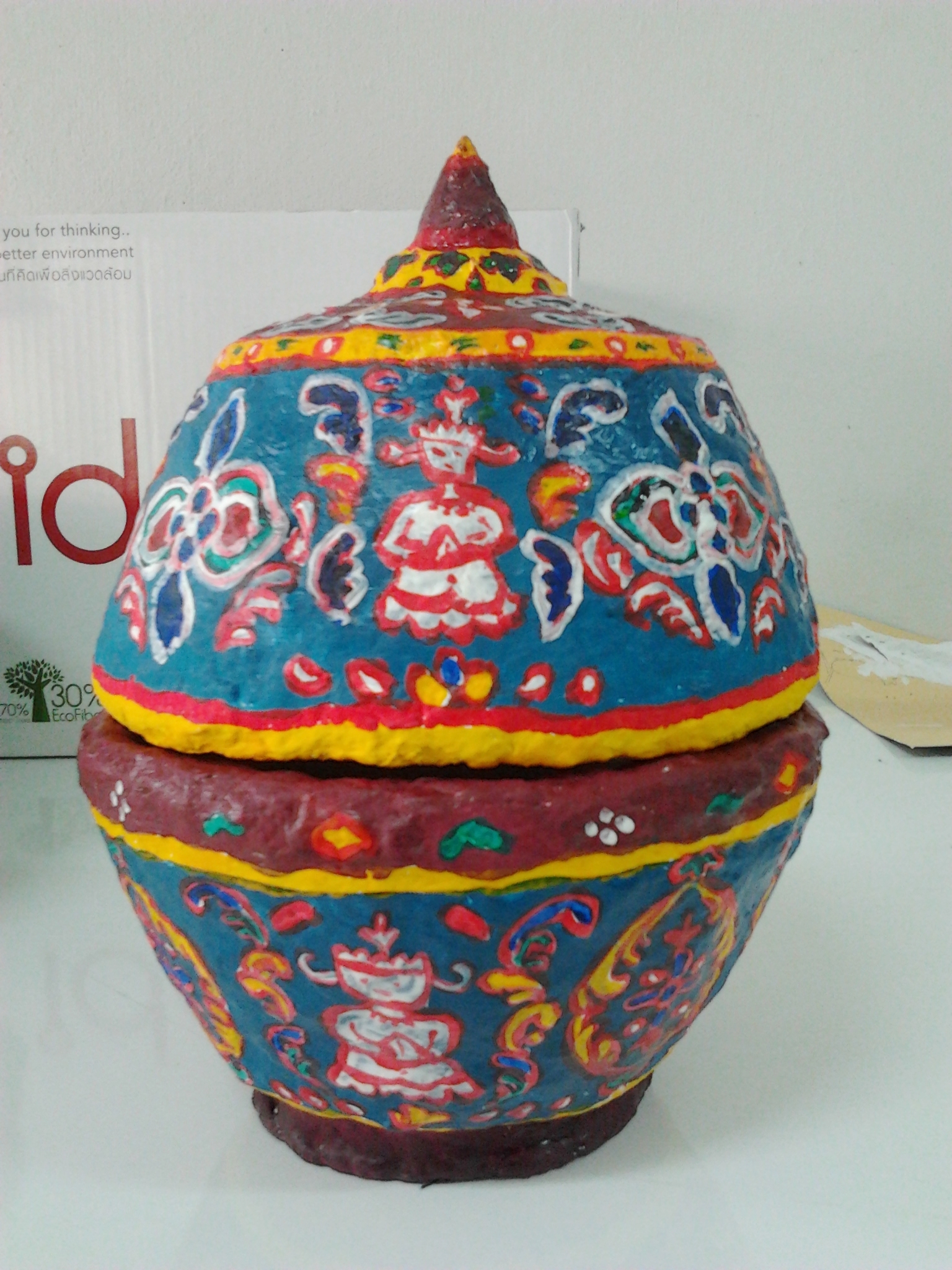 เปเปอร์มาเช่เลียนแบบเครื่องถ้วยเบญจรงค์