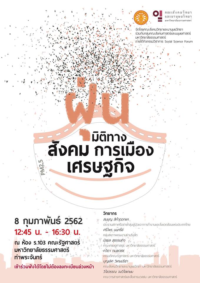 ขอเชิญร่วมงานเสวนา “ฝุ่น : มิติทางสังคม การเมือง เศรษฐกิจ”