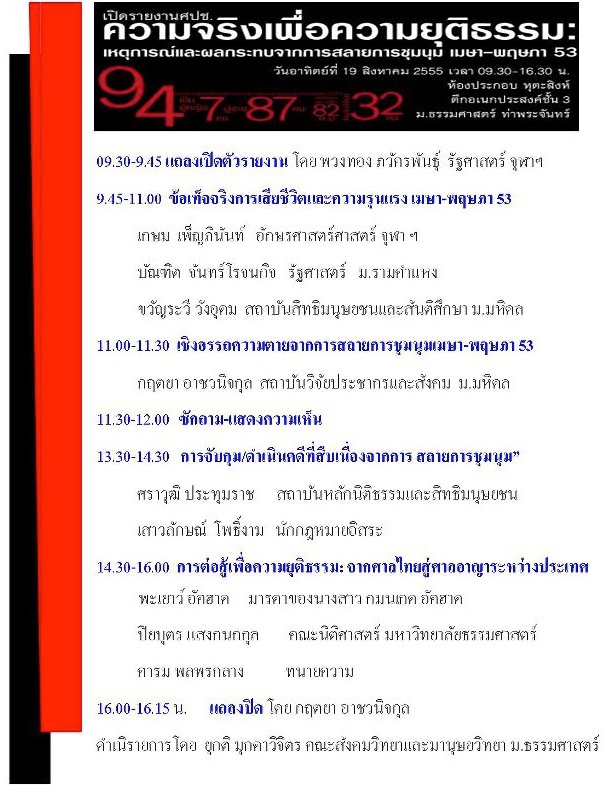 “ความจริงเพื่อความยุติธรรม: เหตุการณ์และผลกระทบจากการสลายการชุมนุม เมษา-พฤษภา 53”
