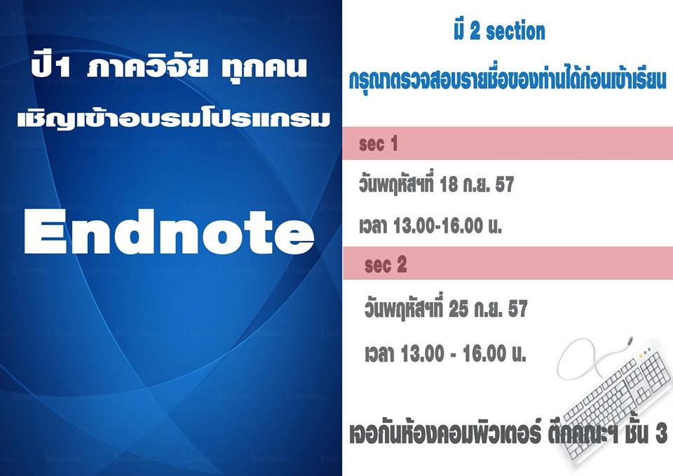 หลักสูตร การสืบค้นและอ้างอิงเอกสารด้วยโปรแกรม Endnote