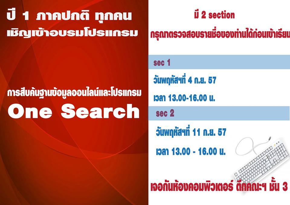 หลักสูตร การสืบค้นฐานข้อมูลออนไลน์และการใช้โปรแกรม One Search